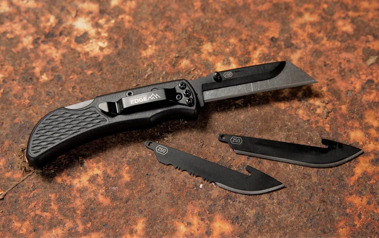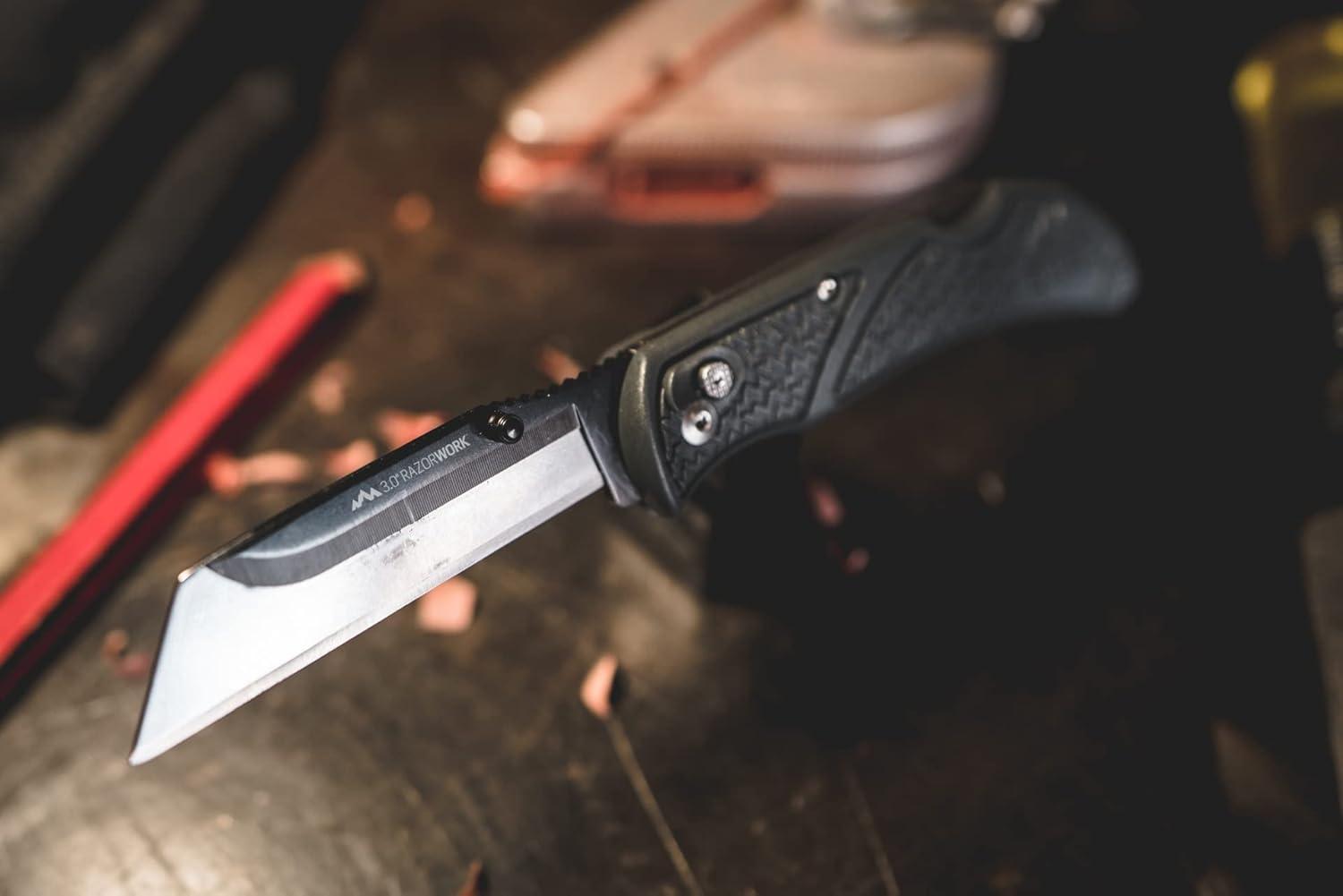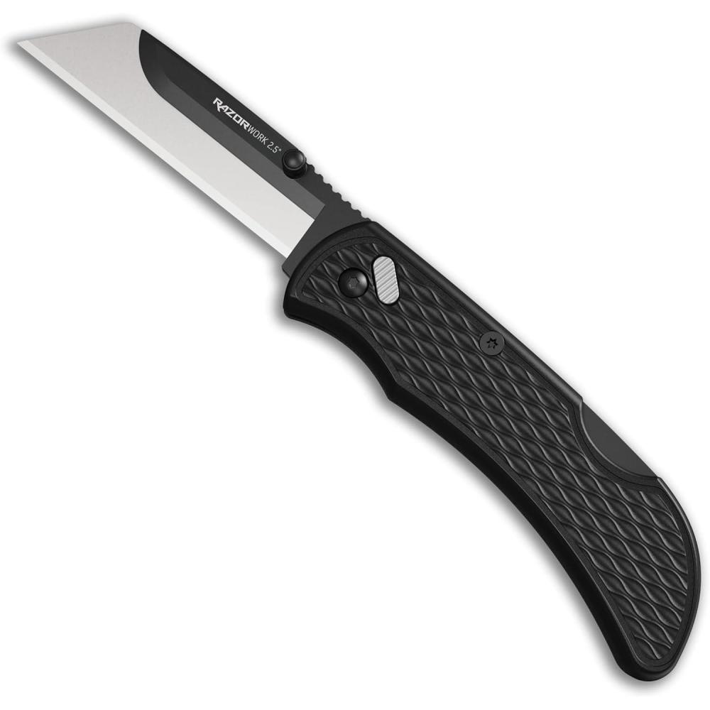 OUTDOOR EDGE 3.0″ RAZOR-WORK – RazorSafe Replaceable Blade Folding Utility Knife with Pocket Clip, 3X Cutting Edge, Shaving Sharp (Gray, 3 Blades)(Black)