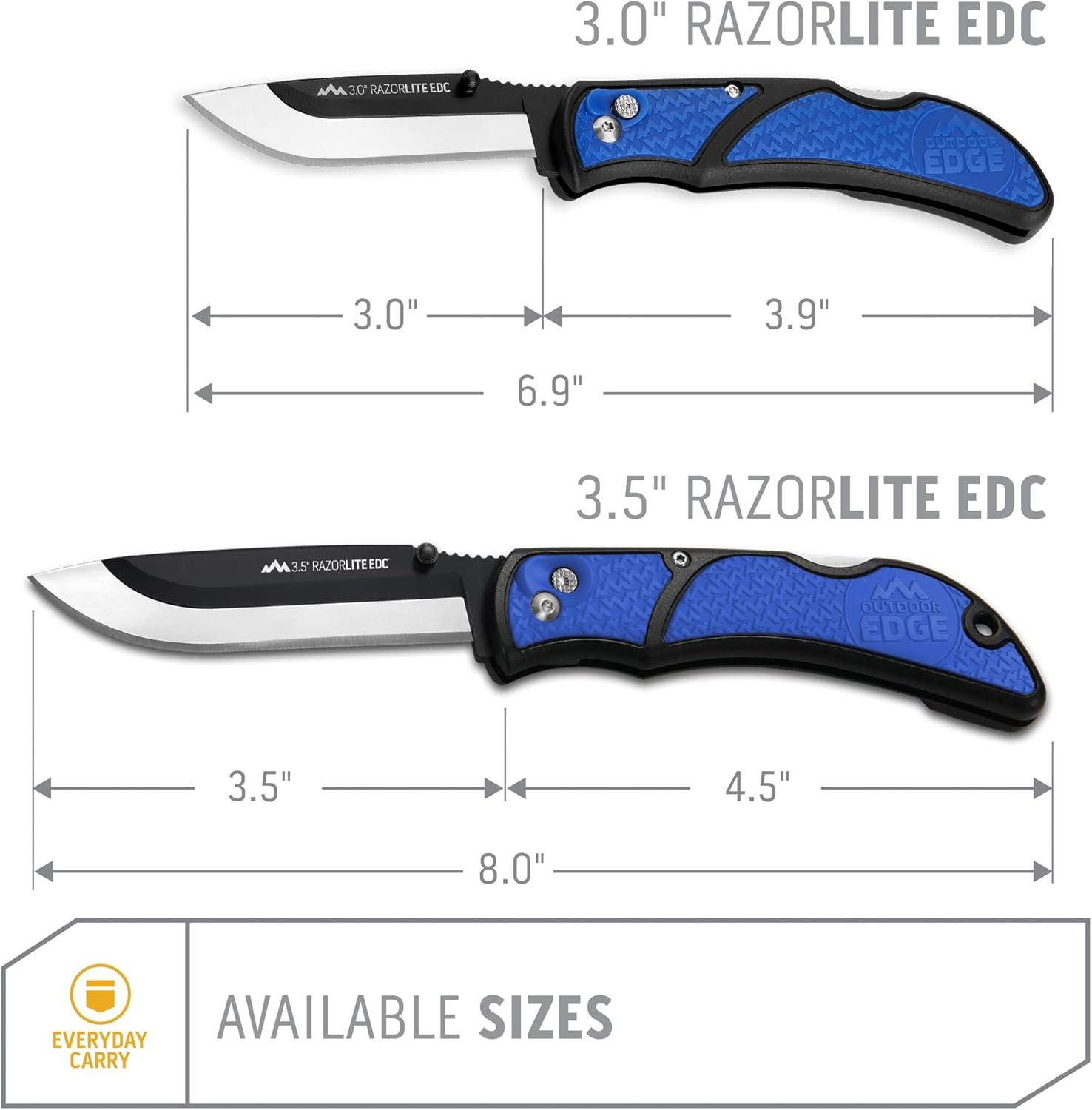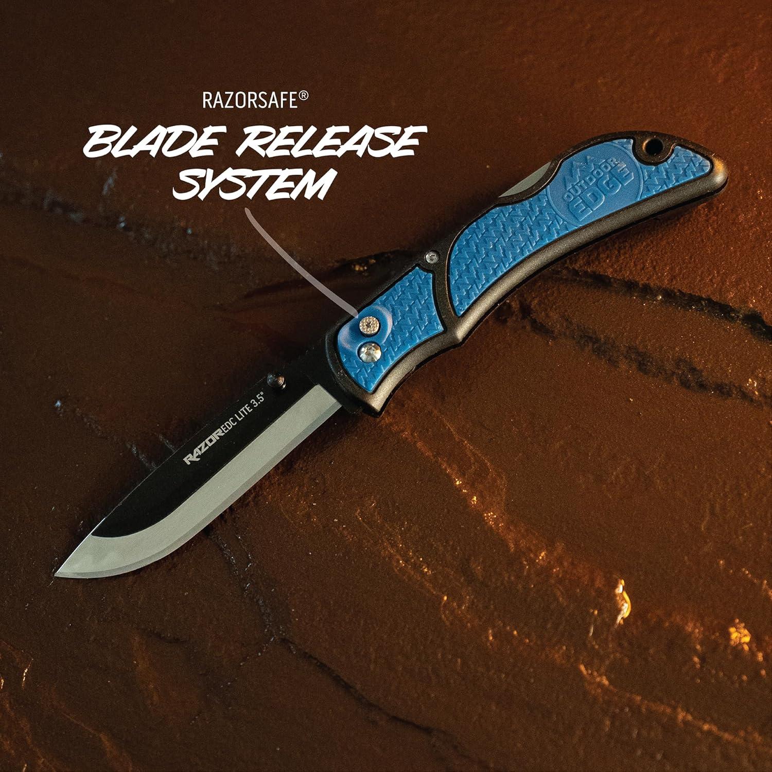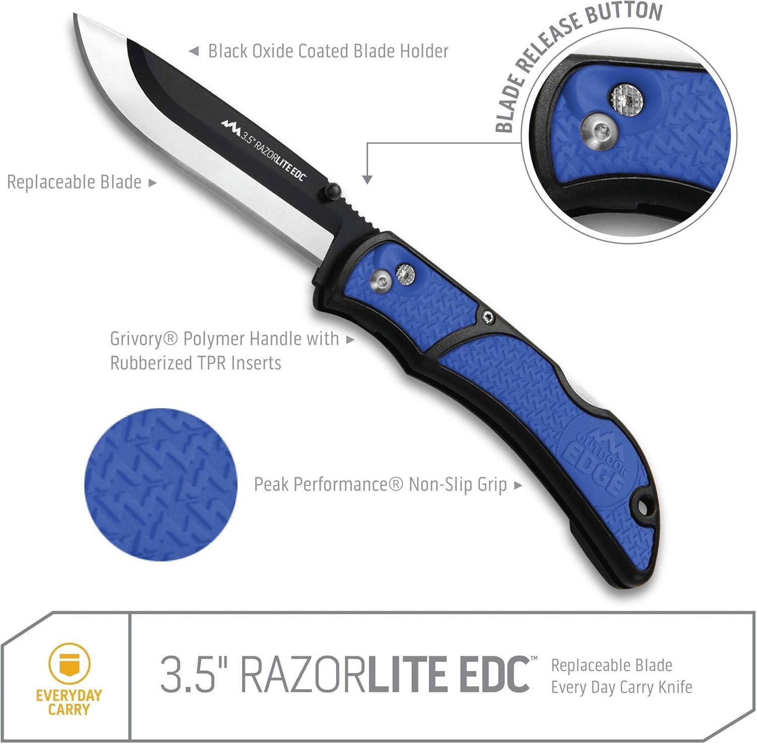 OUTDOOR EDGE 3.5″ RazorLite EDC Knife. Pocket Knife with Replaceable Blades and Clip. Perfect For Hunting & Skinning Deer. Blaze Orange with 30 Blades.(Blue (6 Blades))