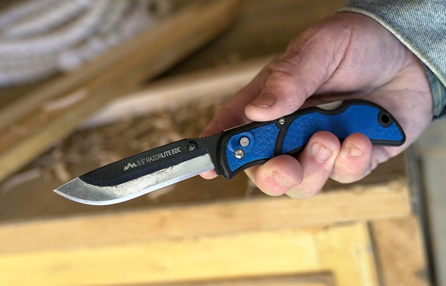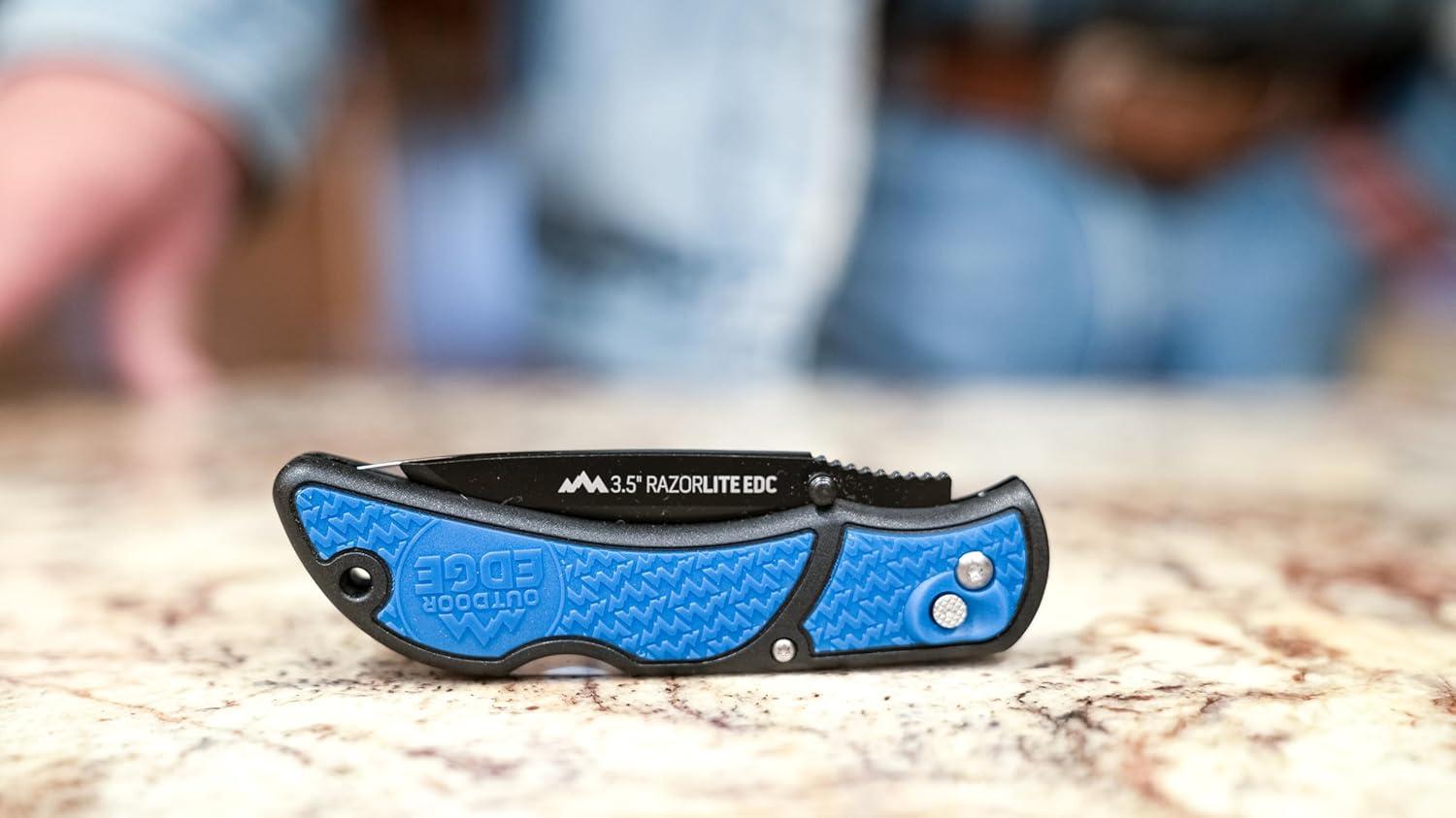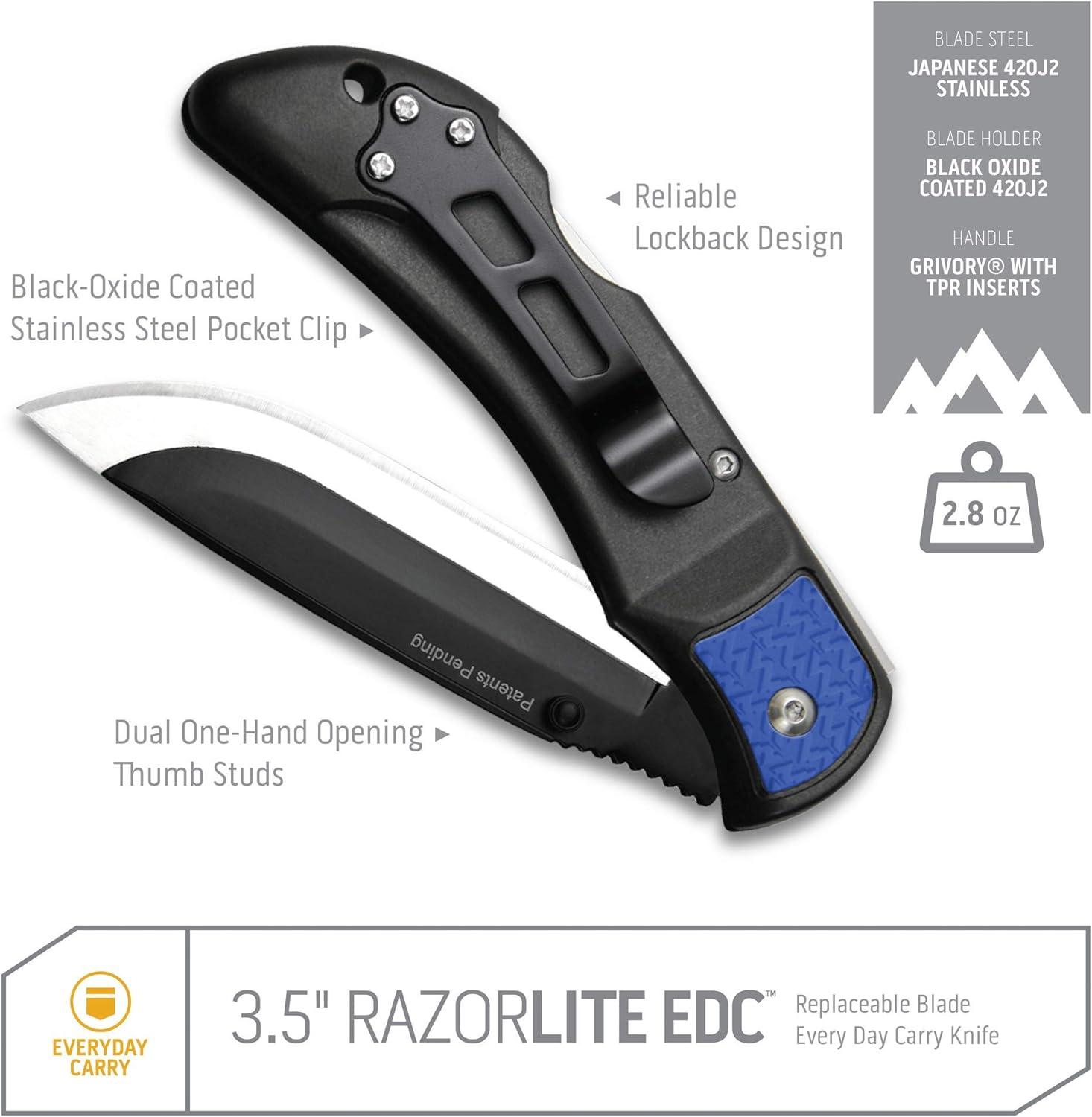 OUTDOOR EDGE 3.5″ RazorLite EDC Knife. Pocket Knife with Replaceable Blades and Clip. Perfect For Hunting & Skinning Deer. Blaze Orange with 30 Blades.(Blue (6 Blades))
