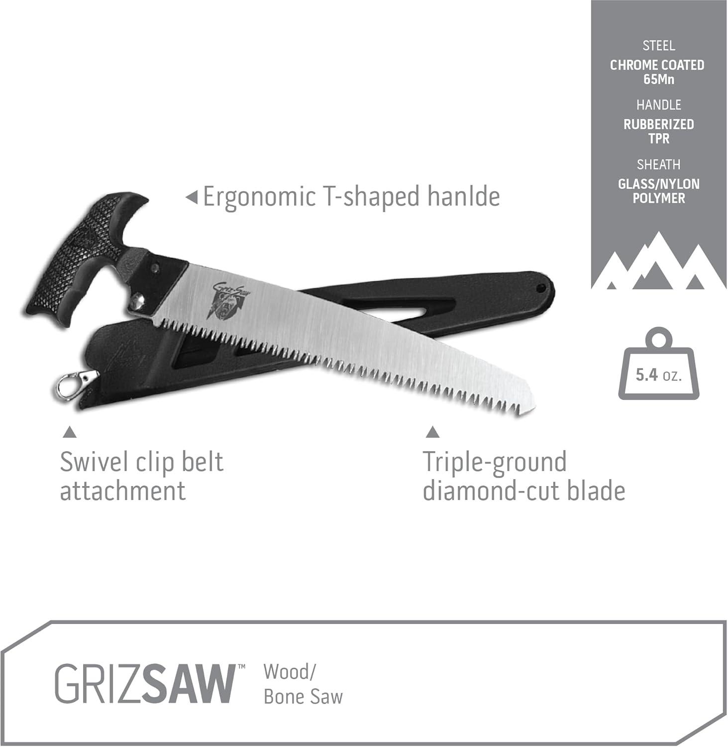 Outdoor Edge GrizSaw – Lightweight T-Handle Fixed Blade Outdoor-Hunting Saw with 8.0″, 65Mn Spring Steel Blade for Cutting Tough Bone and Wood and Locking Zytel Sheath with Swivel Clip Belt Attachment