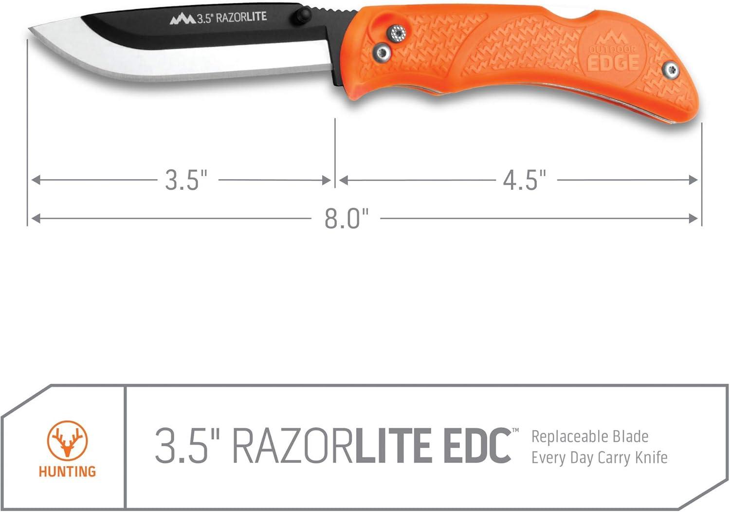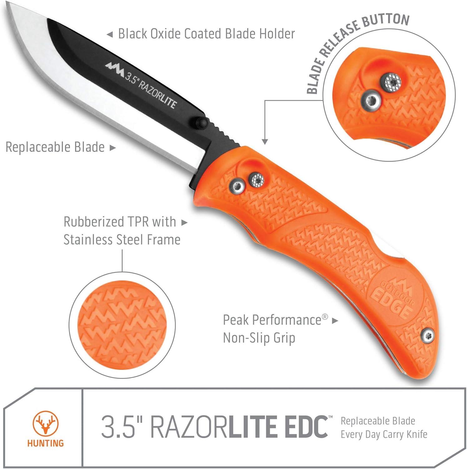 OUTDOOR EDGE Razor-Lite Folding Hunting Knife – 3.5″ Replaceable Razor Blades, Non-Slip Rubber Handle, Lock-Back Safety, Includes 6 Blades and Nylon Sheath(Orange)