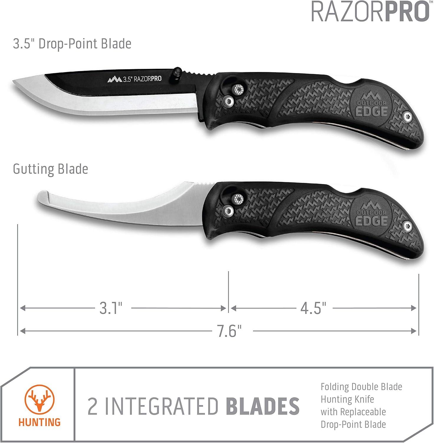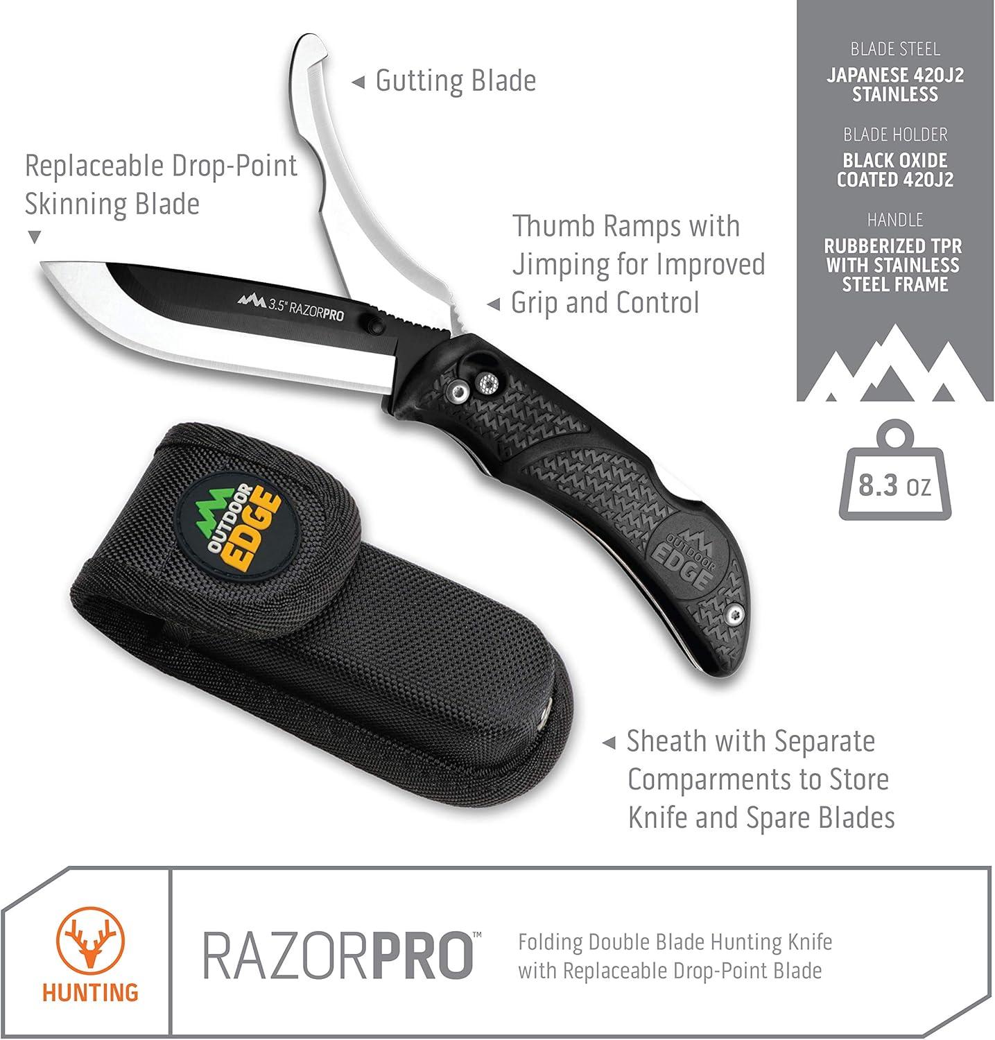 OUTDOOR EDGE RazorPro G Double Blade Hunting Knife – Replaceable Razor Sharp Skinning Blade & Gutting Knife for Fast Field Dressing, Non-Slip Black Handle, Black Sheath with 6 Extra Blades (Orange)(Black)