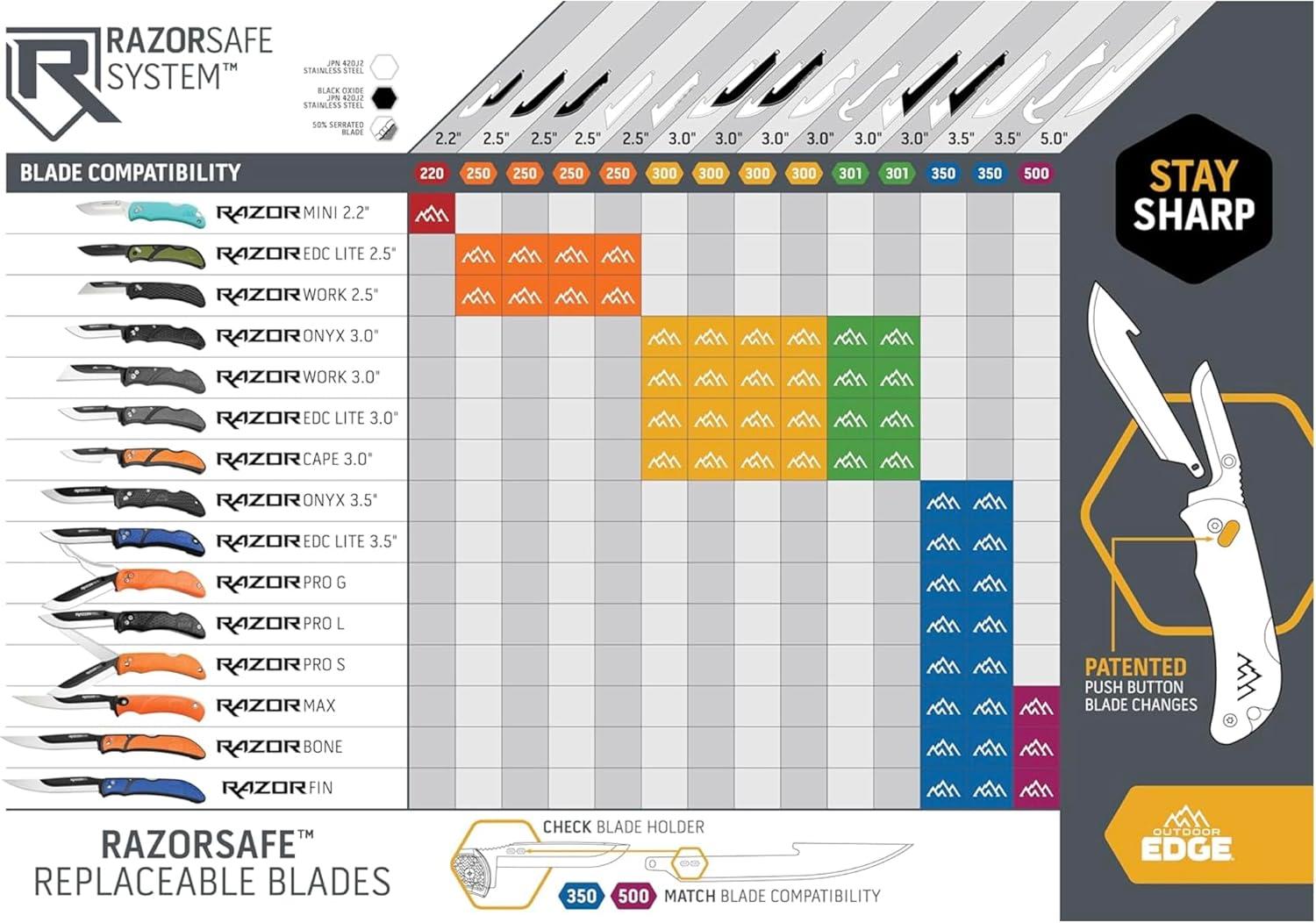 OUTDOOR EDGE RazorSafe 3″ Utility with Serrations | 6 Pack of Stainless EDC Utility Blades | Compatible 3″ Razor Blade Knives | Perfect for Work & Everyday Carry(Black Serrated)