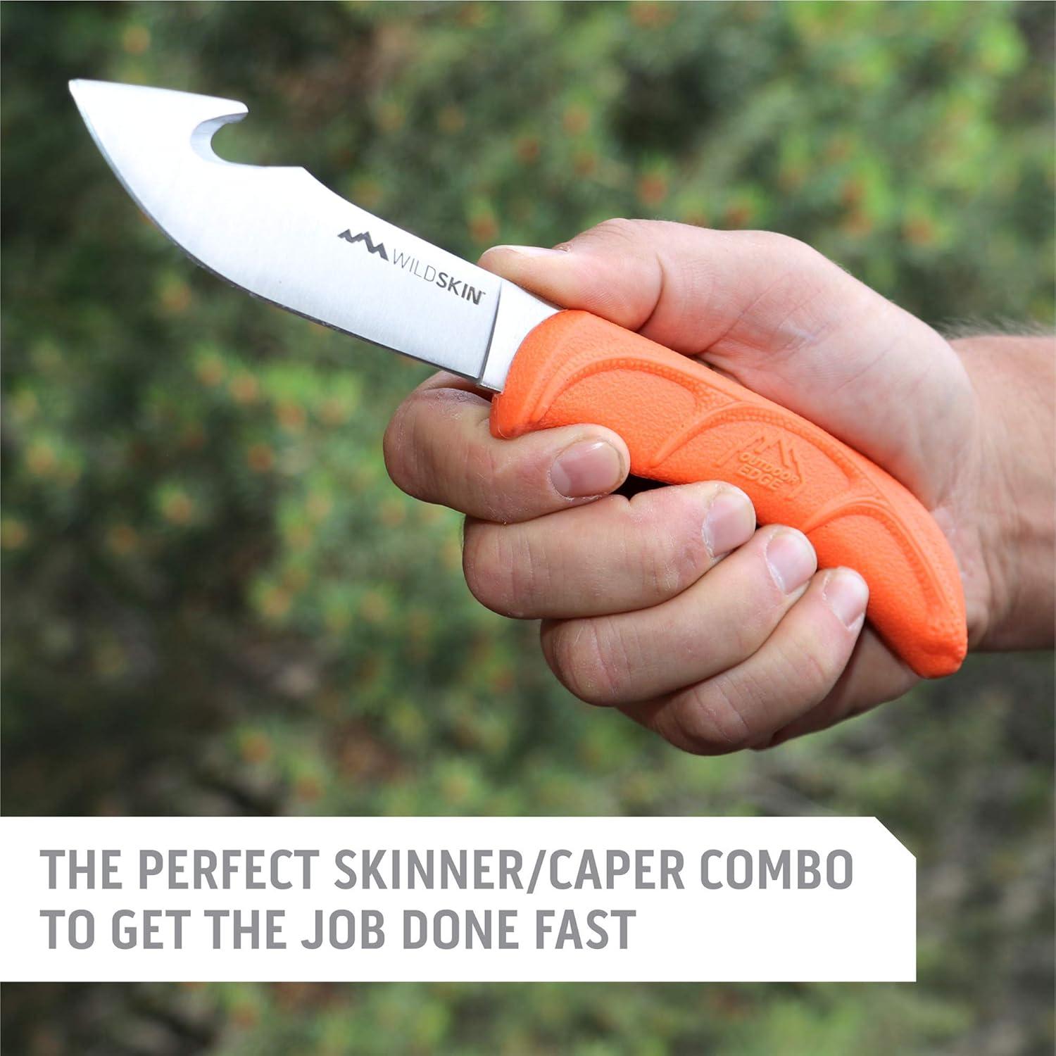 OUTDOOR EDGE WildBone, 4-Piece Hunting Knife Set, Field Dressing & Game Processing Knives – Gut-Hook Skinning & Boning/Fillet Knife, Carbine/Ceramic Sharpener, Camo Belt Scabbard – Deer & Elk(WildPair)